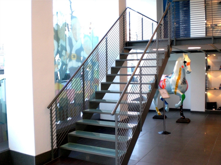 Ces escaliers comportant des paliers sont également appelés escaliers à palier.